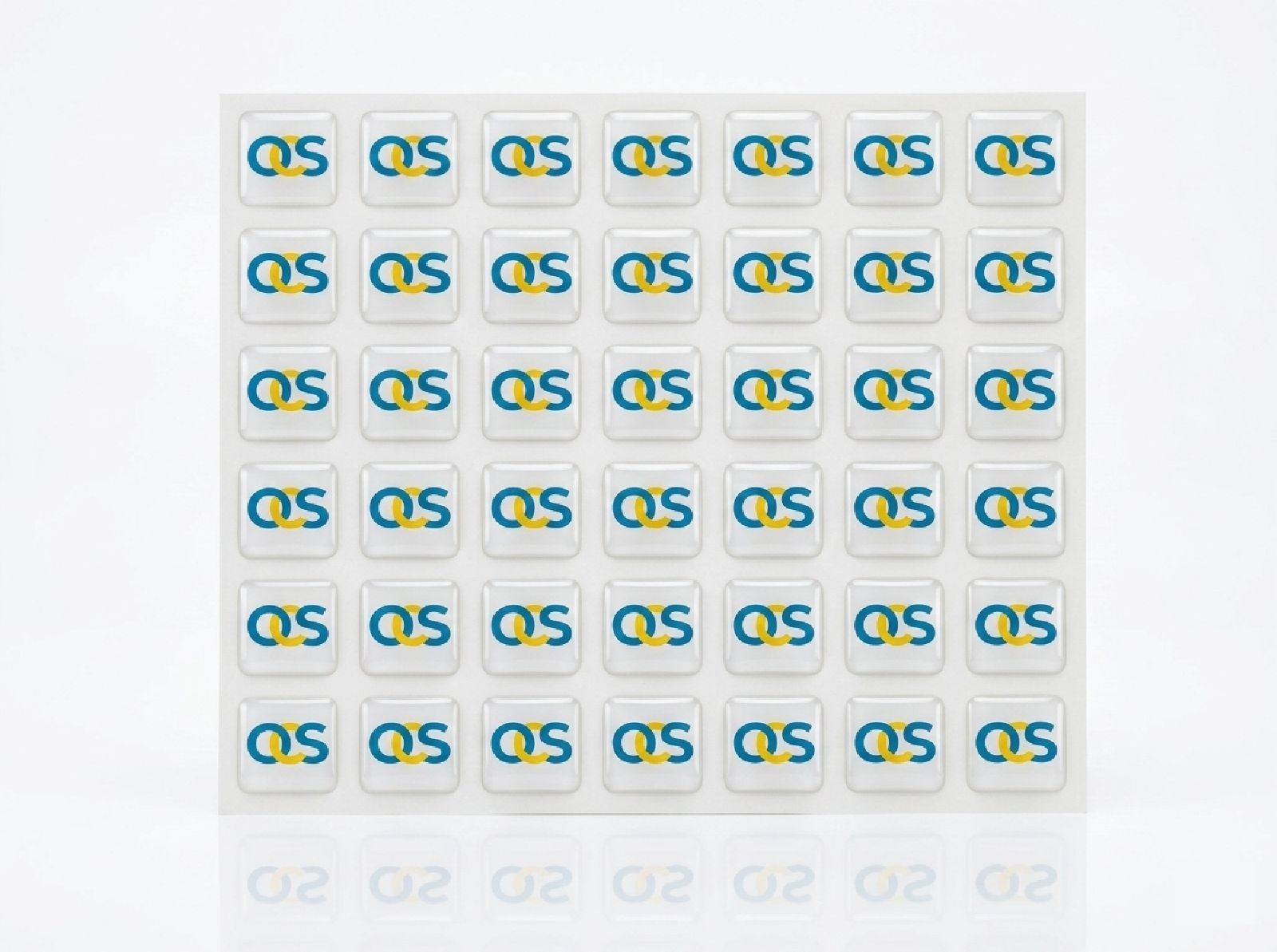 Doming is a term for making flat labels 3-dimensional by applying a bevel of crystal clear lens onto a printed surface.
